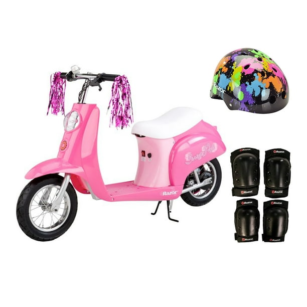 Razor Pocket Mod Mini Electric Scooter Bundle With Rainbow Helmet Safety Pads Walmart Com